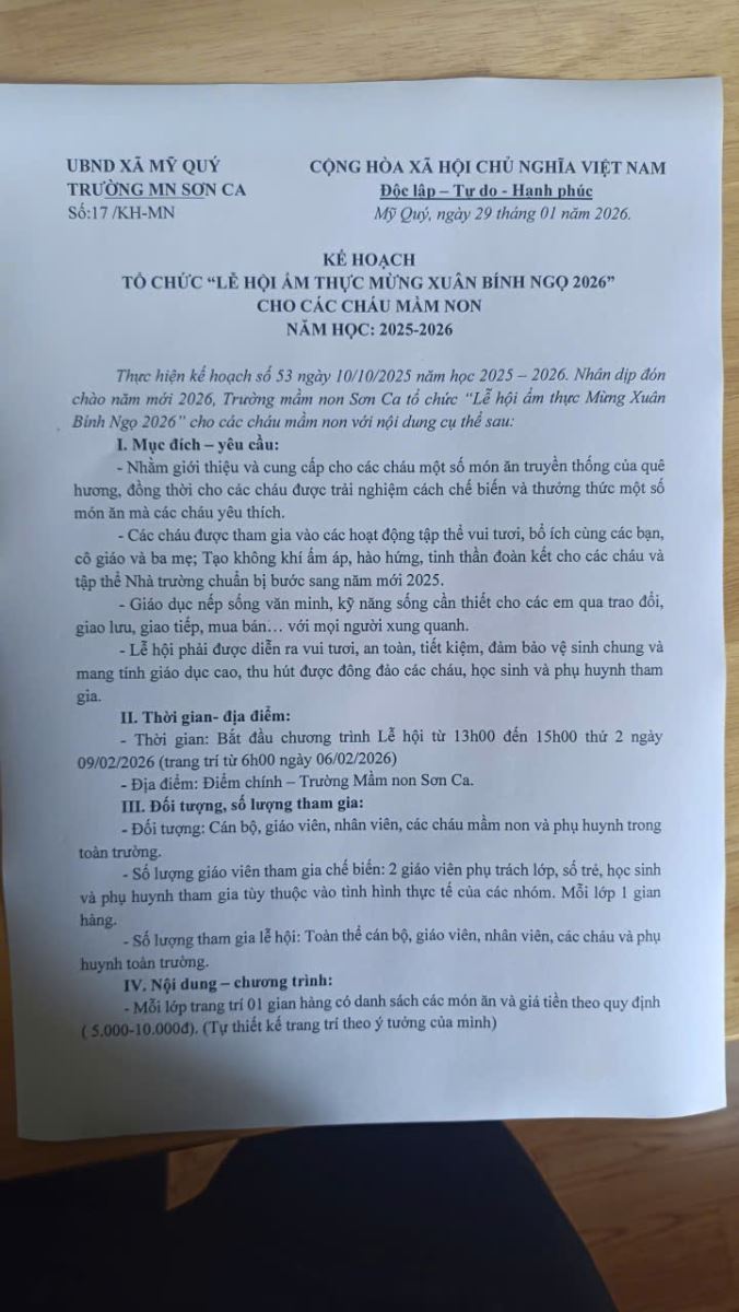 • Trường MN Sơn Ca Mỹ Quý long trọng tổ chức "Lễ hội ẩm thực mừng xuân Bính Ngọ 2026" ngày 9/2/2026
